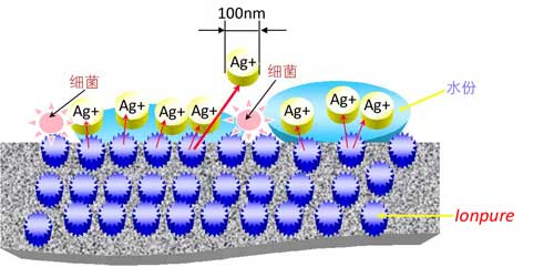 英特马饮水机的所有与水接触的塑胶件注塑生产时都添加有Ionpure抗菌剂。Ionpure为一种无机抗菌剂,已通过美国食品安全的FDA及世界最权威的饮水卫生安全的NSF认证。Ionpure最主要的有抗菌功效的成分是银,通过释放阴离子杀死细菌。银离子非常小,约100nm大,然而却能非常精确地攻击并杀死细菌,从而抑制塑胶表面的细菌繁殖。此被称为“纳米生物科技”。Ionpure就是完全利用这个科技的抗菌剂。